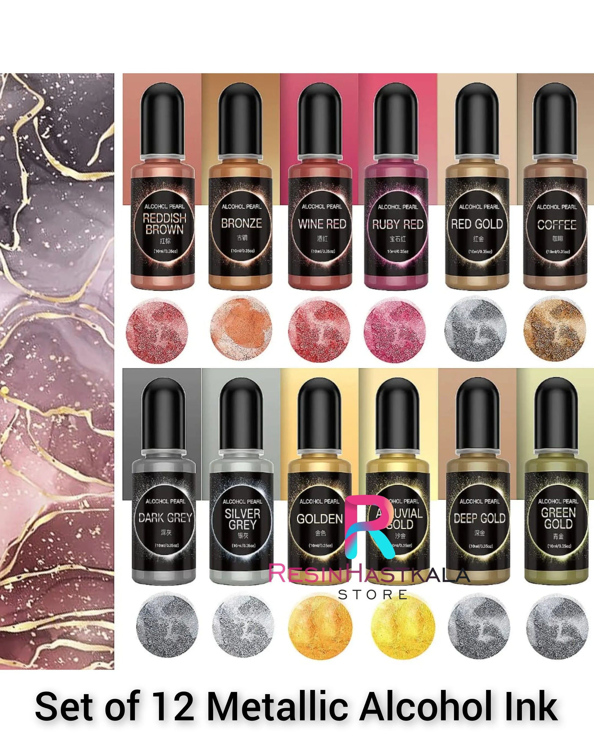 Set Of 12 Metallic Alcohol Ink